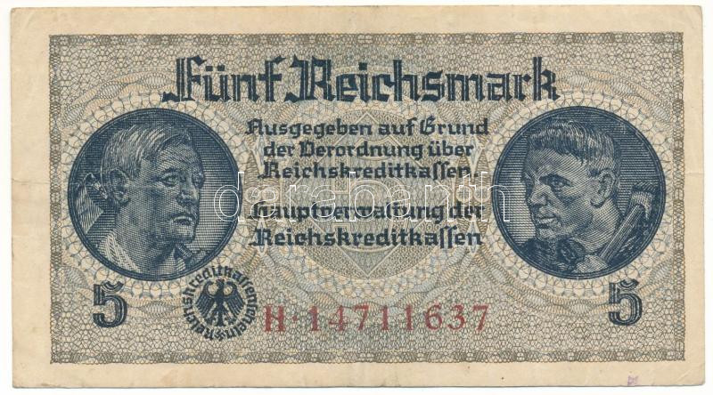 Német Harmadik Birodalom / Német megszállt területek 1940-1945. 5M T:F erős papír German Third Empire / German Occupied Territories 1940-1945. 5 Reichsmark C:F strong paper Krause P#R138