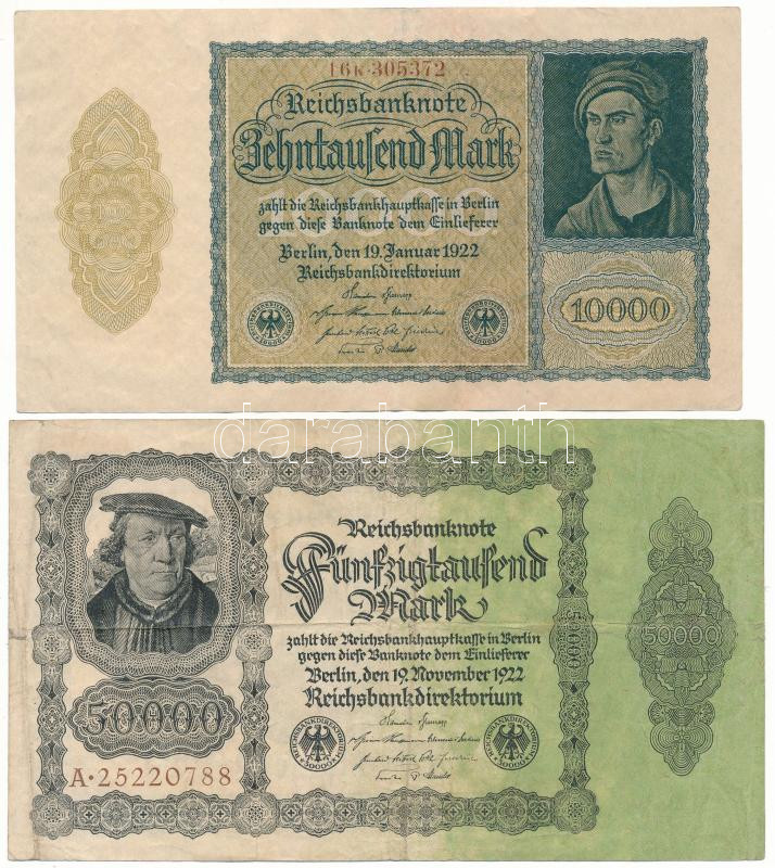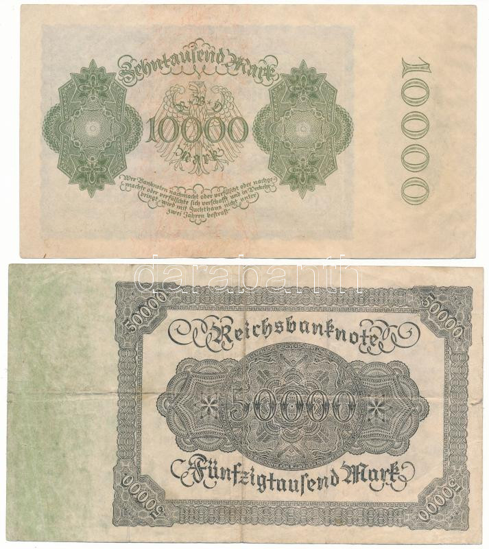 Németország / Weimari Köztársaság 1922. 10.000M + 50.000M alapnyomat nélküli T:F, pici szakadások