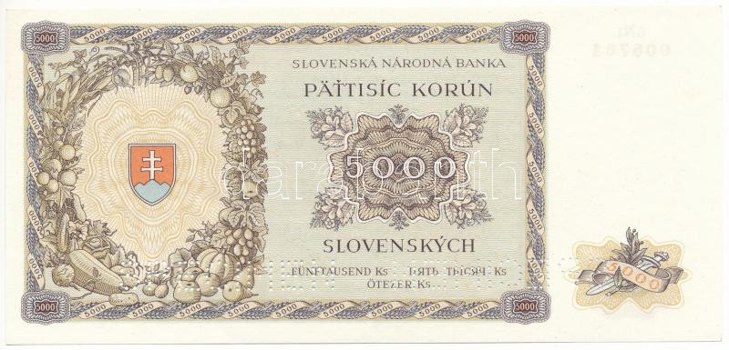 Leírás: Szlovákia 1944. 5000K "6Ni 006764", "SPECIMEN (MINTA)" perforációval T:F szép papír / Slovakia 1944. 5000 Korun "6Ni 006764" with "SPECIMEN " perforation C:F fine paper