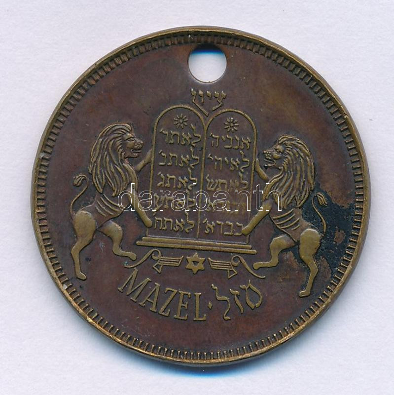 Amerikai Egyesült Államok DN "Az Úr áldjon meg és őrizzen meg téged. Az Úr ragyogjon fel előtted az ő arca, és mutasson kegyelmet. Az Úr emelje fel hozzád arcát és adjon neked békét / MAZEL" héber és angol nyelvű, kétoldalas, lyukasztott bronz emlékérem (31mm) T:AU patina
