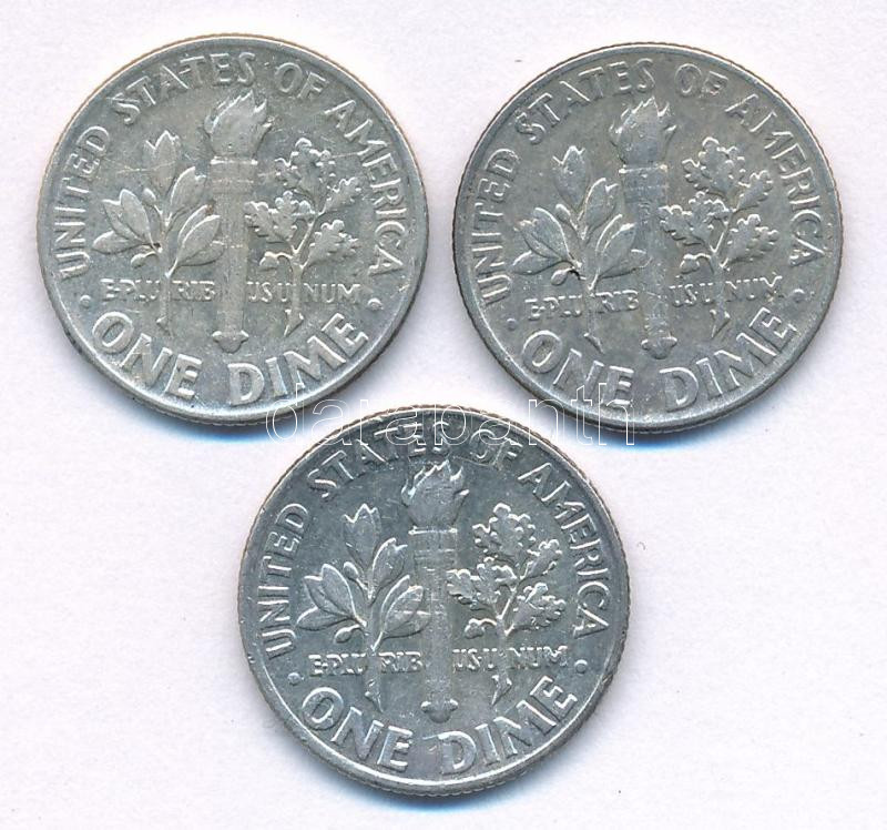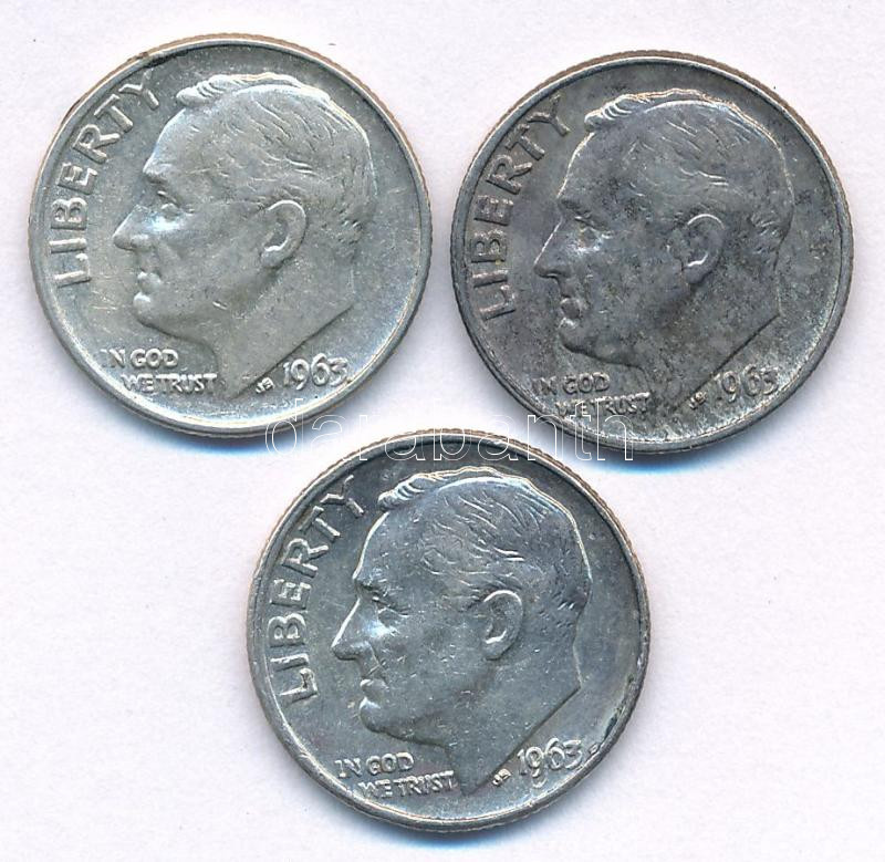 Amerikai Egyesült Államok 1963 10c Ag (3x) "Roosevelt Dime" T:XF patina United States of America 1963 10 Cents Ag (3x) "Roosevelt Dime" C:XF patina Krause KM#195