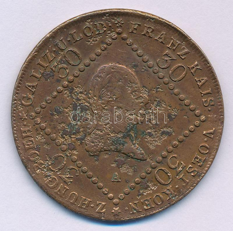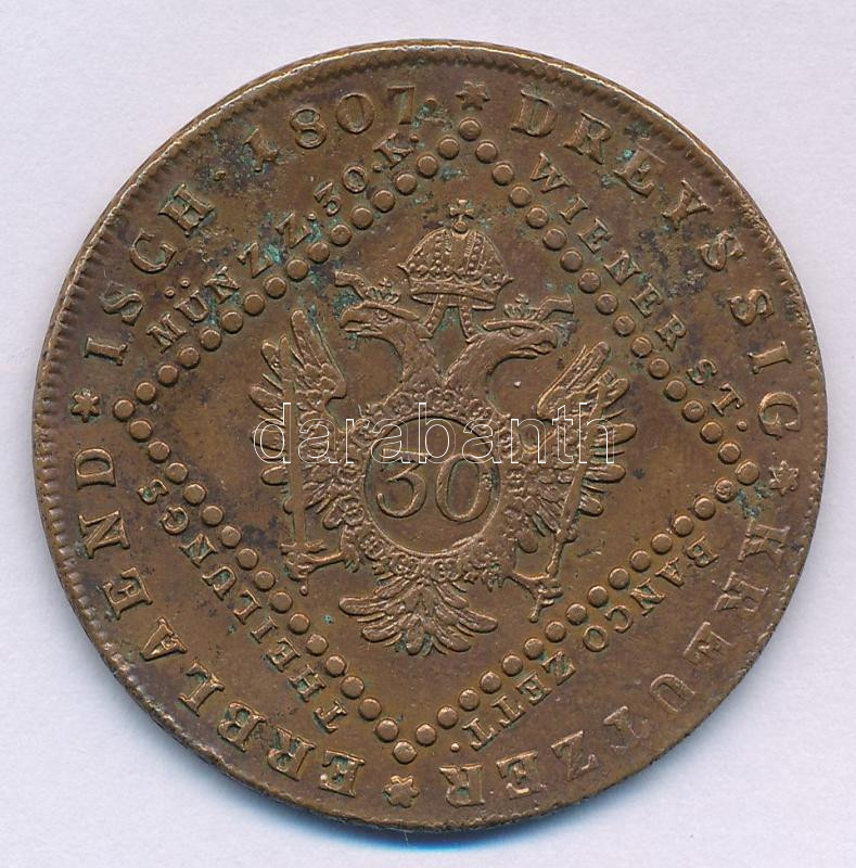 Ausztria 1807A 30kr Cu T:VF anyaghiba Austria 1807A 30 Kreuzer Cu C:F ... https://www.darabanth.com/hu/484-Gyorsarveres/484.0/Numizmatika/Kulfoldi-fem-es-ezustpenzek~500015/Ausztria-1807A-30kr-Cu-TVF-anyaghiba-Austria-1807A-30-Kreuzer-Cu-CF-material-error-Krause-KM232149~II3262056