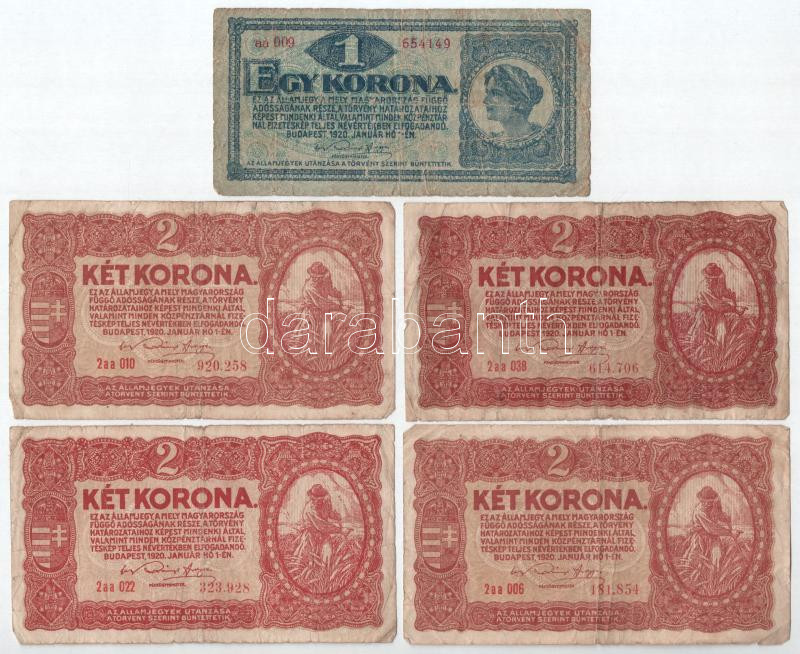 1920. 1K + 1920. 2K (4x) T:VG https://www.darabanth.com/hu/484-Gyorsarveres/484.0/Numizmatika/Magyar-bankjegyek~500008/1920-1K-plus-1920-2K-4x-TVG~II3279269