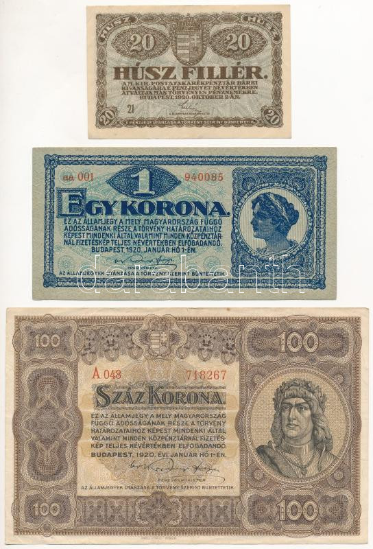 1920. 20f + 1K "aa 001 940085" + 100K "Orell Füssli Zür... https://www.darabanth.com/hu/484-Gyorsarveres/484.0/Numizmatika/Magyar-bankjegyek~500008/1920-20f-plus-1K-aa-001-940085-plus-100K-Orell-Fussli-Zurich-nyomdahely-jelolessel-A-048-718267~II3313182
