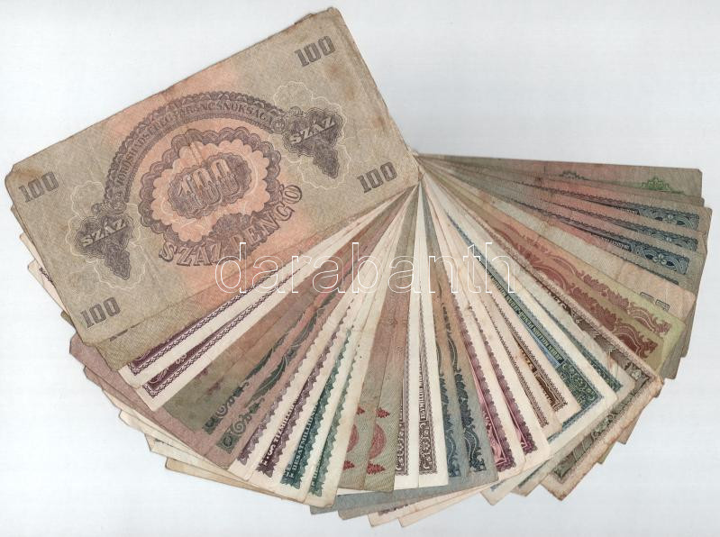 1930-1946. 34db-os vegyes pengő, milpengő és Vöröshadsereg pengő bankj... https://www.darabanth.com/hu/484-Gyorsarveres/484.0/Numizmatika/Magyar-bankjegyek~500008/1930-1946-34db-os-vegyes-pengo-milpengo-es-Voroshadsereg-pengo-bankjegy-tetel-TF-VG~II3258994
