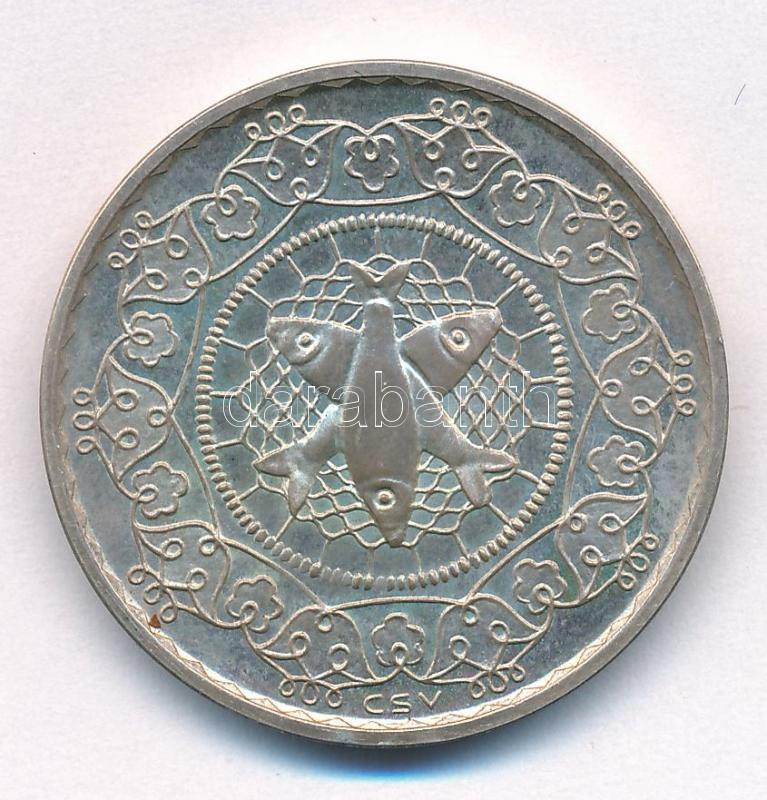 Leírás: Csúcs Viktória (1934-) DN "Kiskunhalas " kétoldalas jelzett Ag emlékérem (16,87g/0.925/32mm) T:AU, patina