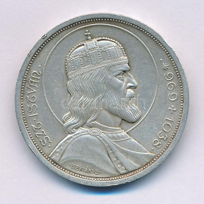 Leírás: 1938. 5P Ag "Szent István" T:AU,XF patina