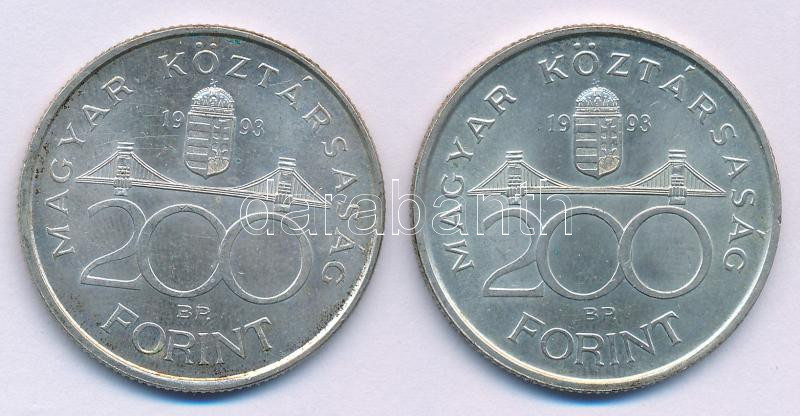 Leírás: 1993. 200Ft Ag "MNB " (2x) T:AU