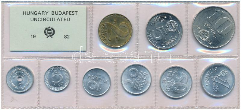 Leírás: 1982. 2f-10Ft (9xklf) érmés forgalmi sor fóliatokban T:UNC patina Adamo FO15