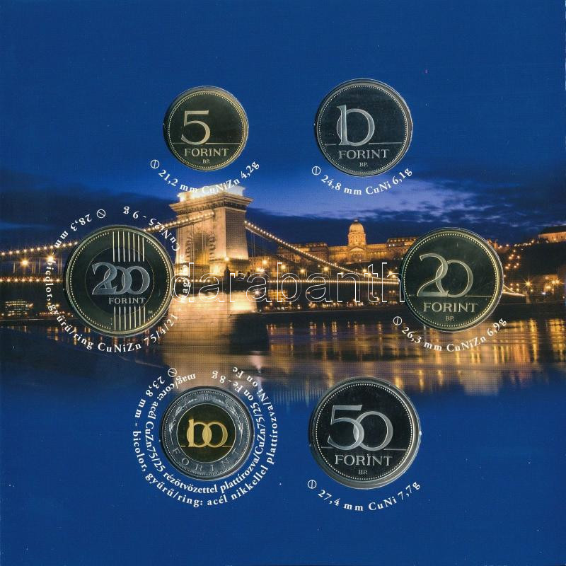Leírás: 2009. 5Ft-200Ft (6xklf) "Lánchíd" forgalmi sor szettben T:PP kopottas külső védőtok