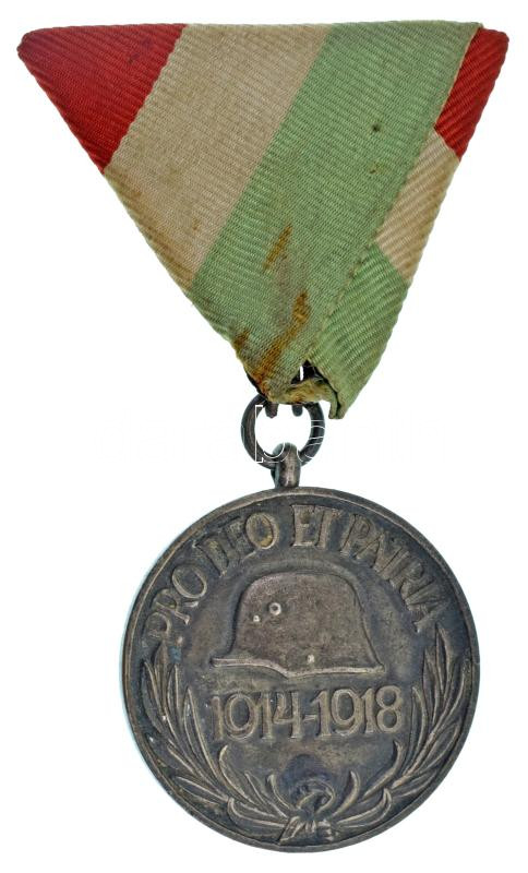Hungary 1929. "Hungarian Commemorative War Medal with swords and a helmet" silver plated bronze decoration with ribbon, with "BRONZ" hallmark on edge C:XF