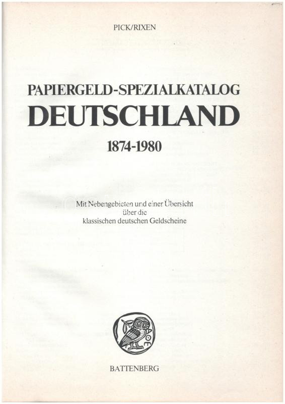Pick, Albert - Dr. Rixen, Jens-Uwe: Papiergeld-Spezialkatalog Deutschl... https://www.darabanth.com/hu/484-Gyorsarveres/484.0/Numizmatika/Numizmatikai-irodalom~500003/Pick-Albert-Dr-Rixen-Jens-Uwe-3Cem3EPapiergeld-Spezialkatalog-Deutschland-1874-18903Cem3E-Batten~II3291951