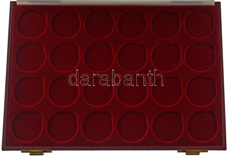 Leírás: Bordó műbőr borítású érmetartó doboz, összesen 24db svájci 5 Frankos számára, jó állapotban