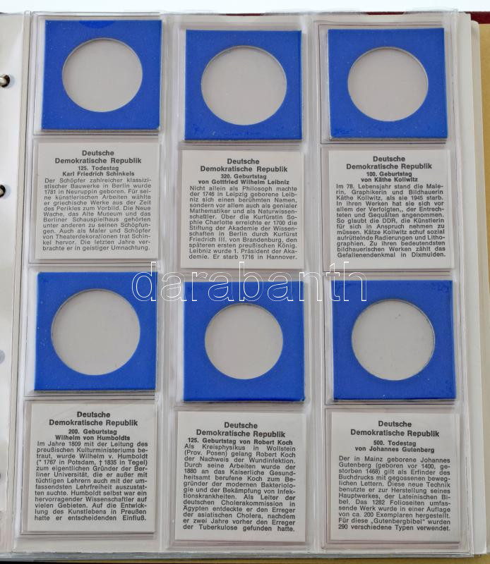 Leírás: Használt, jó állapotú gyűrűs érmealbum, benne 11 berakólap, sok NDK-s érméhez illő tanúsítvánnyal