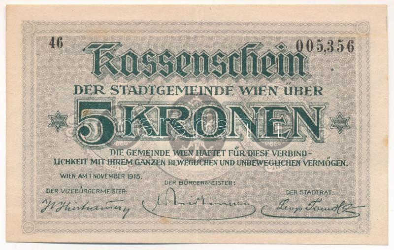 Leírás: Ausztria / Bécs 1918. 5K helyi bankjegy T:VF Austria / Wien 1918. 5 Kronen local banknote C:VF