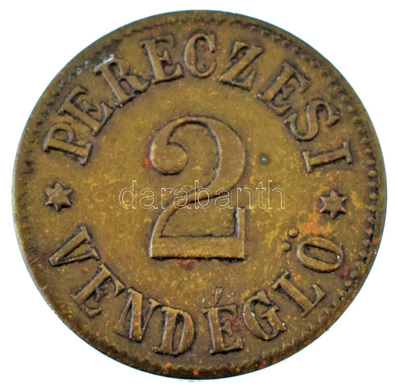 Leírás: Miskolc / Pereces-bányatelep ~1900. "Pereczesi Vendéglő" 2-es értékű bárcája (1,57g/18mm) T:XF R!