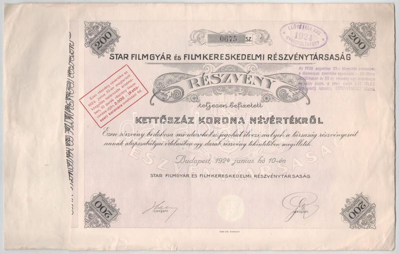Budapest 1924. "Star Filmgyár és Filmkereskedelmi Részvénytársasá... https://www.darabanth.com/hu/484-Gyorsarveres/484.0/Numizmatika/Reszvenyek-es-sorsjegyek~500006/Budapest-1924-Star-Filmgyar-es-Filmkereskedelmi-Reszvenytarsasag-reszveny-200K-rol-szel~II3296266