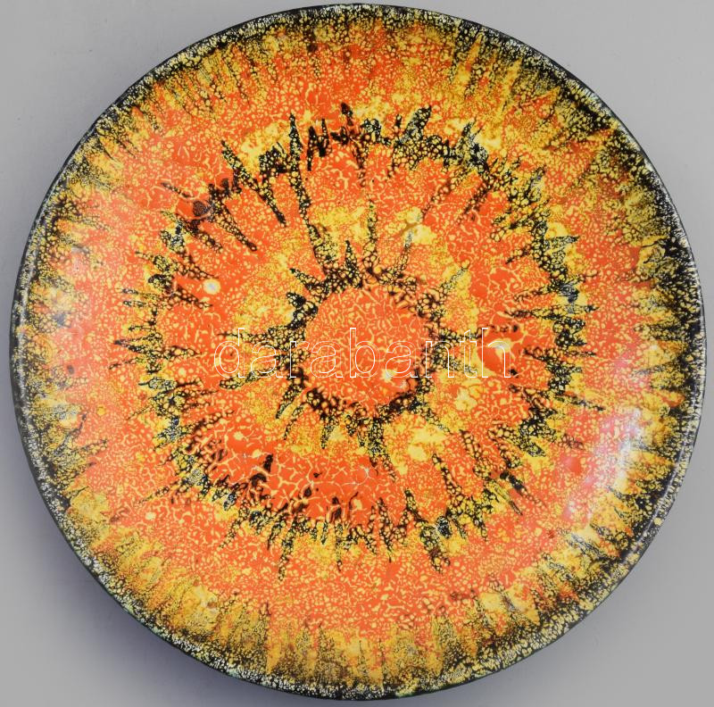 Leírás: Bodrogkeresztúri retro mázas kerámia dísztál, d: 27,5 cm