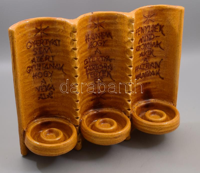 Fekete János (1929-1999): Nagyméretű hármas fali gyertyatartó. Jelzett, feliratos, 32x39 cm /// / KIZÁRÓLAG SZEMÉLYES ÁTVÉTEL, NEM POSTÁZZUK / ONLY PERSONAL COLLECTION IN OUR OFFICE!