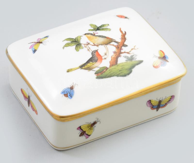 Leírás: Herendi Rothschild mintás bonbonier, jelzett, 8,5x10 cm