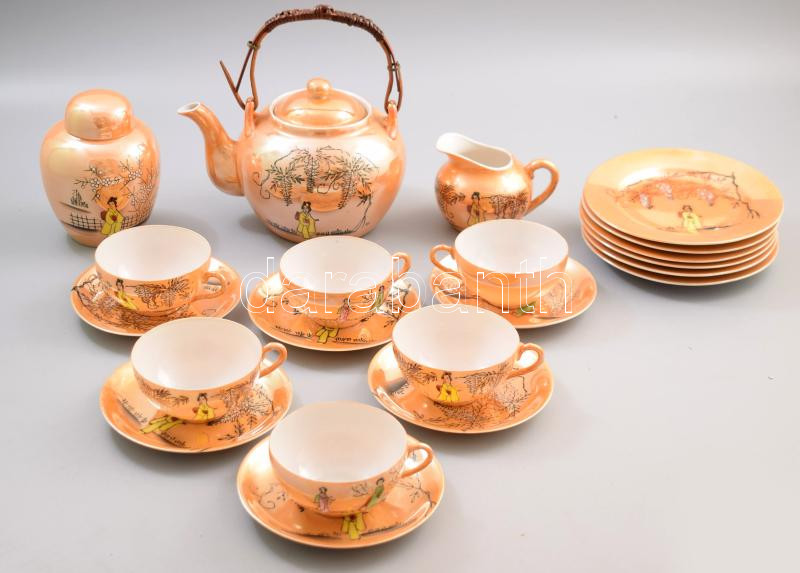 Leírás: Japán 21 részes kávés készlet, jelzett, pótolt darabbal, kopással, kis pattogzással.