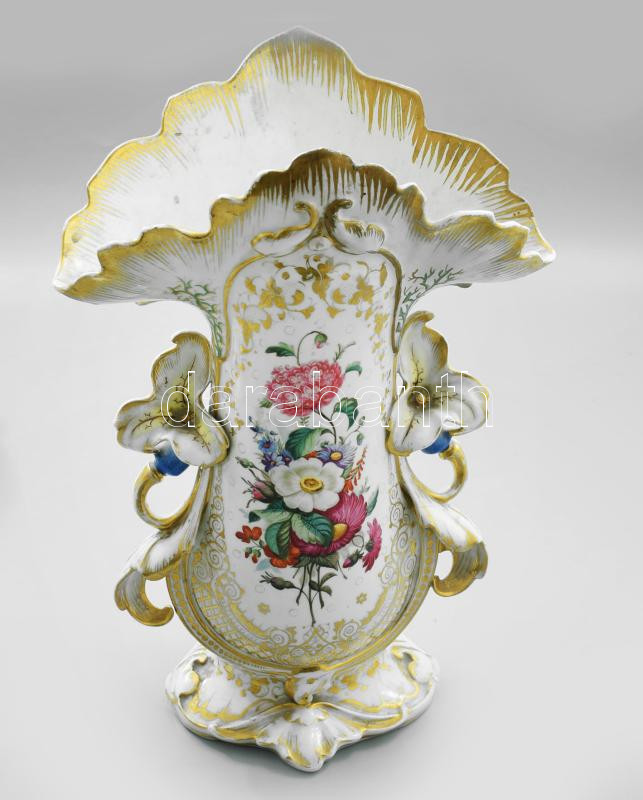 Nagyváza. Cseh, cca 19. sz. utolsó harmada, részben kézzel festett, sorszámozott, restaurált, m: 41,5 cm /// KIZÁRÓLAG SZEMÉLYES ÁTVÉTEL, NEM POSTÁZZUK!