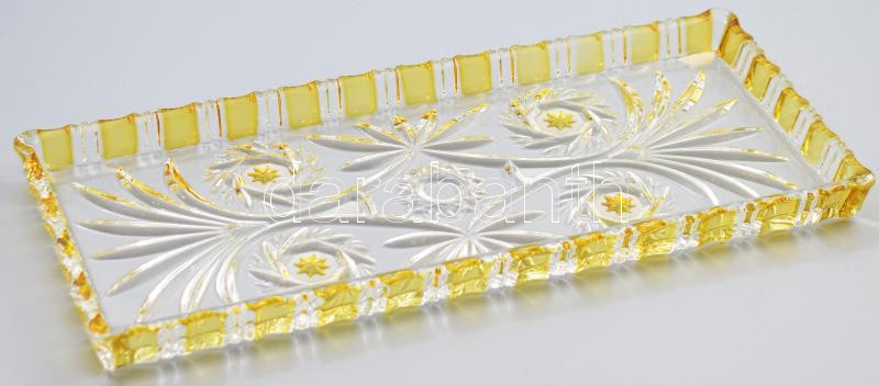 Leírás: Régi kristály tálca, ezüstpácolt díszítéssel, 34x15 cm