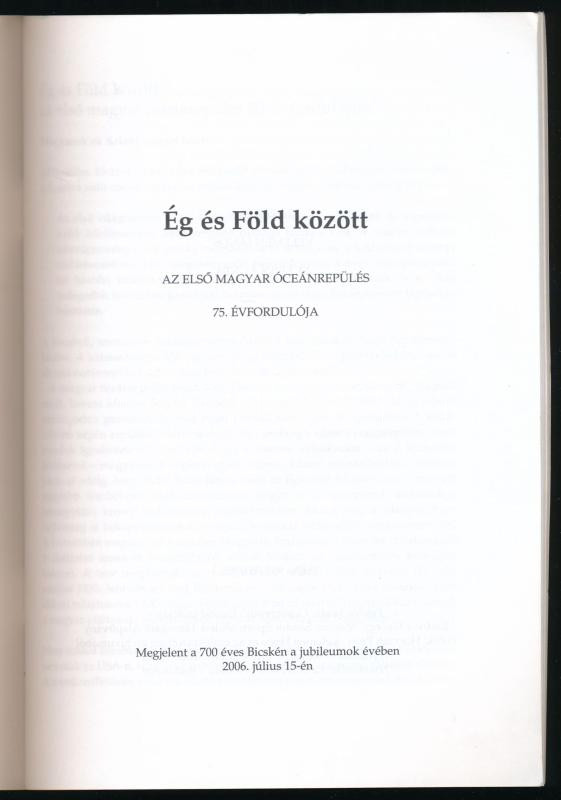Kelemen János - M. Fejes Ágnes (szerk.): Ég és Föld között. Az első magyar óceánrepülés 75. évfordulójára. Bicske, 2006, Óceánrepülő Emlékbizottság. Fekete-fehér képekkel illusztrálva. Kiadói tűzött papírkötés.