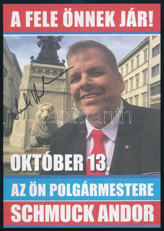 Leírás: Schmuck Andor politikus aláírt választási szórólapja
