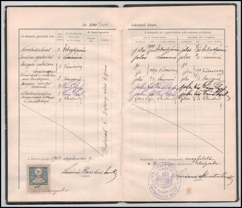 Leírás: 1901 Tanítóképző Intézet leckekönyve Cholnoky Jenő földrajztudós aláírásával