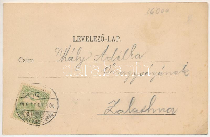 1903 Zám, Sameschdorf, Zam; vízimalom, Maros rész faúsztató tutajosokkal, Bienenstock Sándor üzlete / watermill, street, Mures river with rafters, shop of Bienenstock. Art Nouveau, floral (gyűrődések / creases)