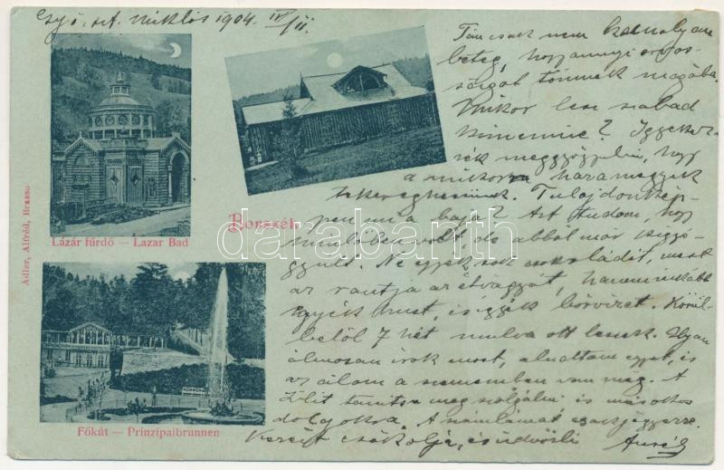 1904 Borszék, Borsec; Lázár fürdő este, Főkút, hátoldalán titkosírássa... https://www.darabanth.com/hu/486-Gyorsarveres/486.0/Kepeslapok/Erdely~1500006/1904-Borszek-Borsec-Lazar-furdo-este-Fokut-hatoldalan-titkosirassal-Adler-Alfred-kiadasa~II3323020