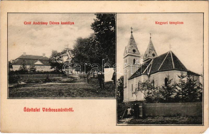 Várhosszúrét, Krasznahorka-Hosszúrét, Krásnohorská Dlhá Lúka; Gróf Andrássy Dénes kastélya, Kegyúri templom. Fogyasztási szövetkezet kiadása / castle, Catholic church (EM)