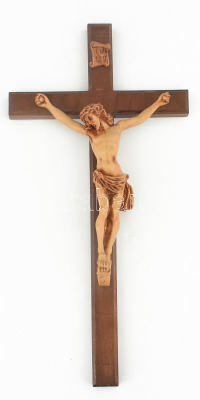 Leírás: Feszület, fa, műgyanta korpusszal 40x20 cm