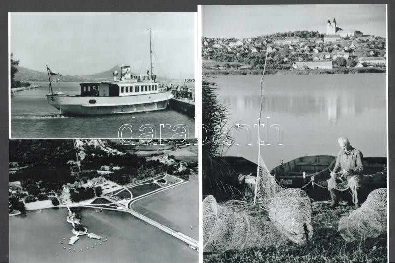 Leírás: cca 1980 előtti felvételek a Balatonról és környékéről (halászok, hajók, táj, kikötők), 7 db modern nagyítás, jelzés nélkül, 10x15 cm és 15x21 cm