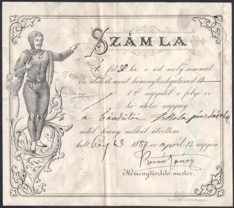 Leírás: 1887 Kéményseprő számla Cegléd Bándülő