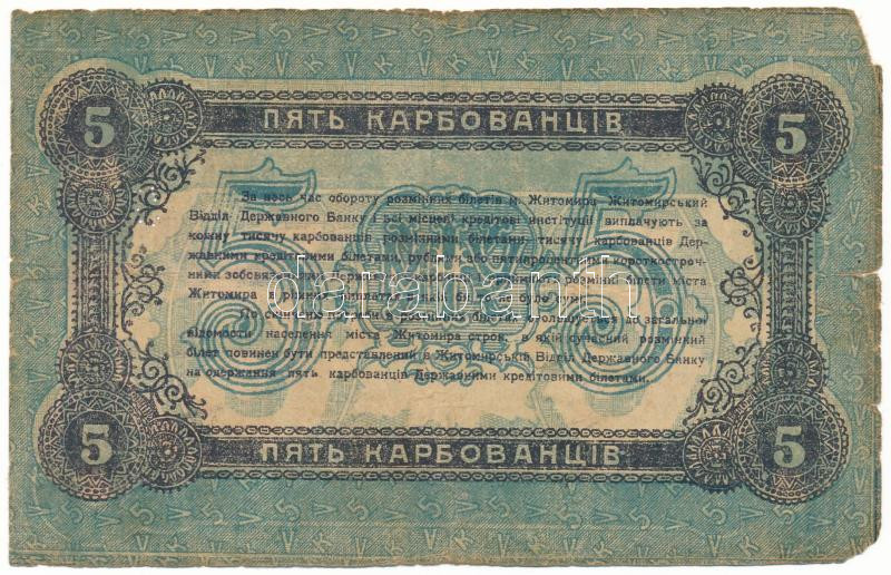 Orosz Polgárháború / Ukrajna / Zsitomir 1918. 5K fekete sorszámmal, pe...
