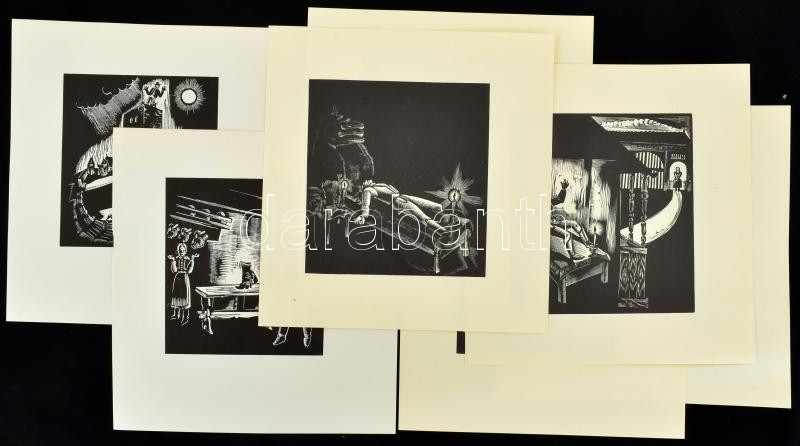 Leírás: Buday György (1907-1990): 10 db jelzés nélküli fametszet, 10x9 cm és 11,5x10,5 cm közötti méretben