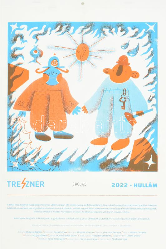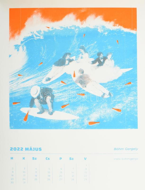 12 db modern grafika magyar grafikusoktól. 2022-es naptáron. Buberg Balázs, Gergic, Ena, Bordás Márton, Blasics Renáta Renya, Böhm Gergely, Varga Balázs, Dusa Kovács Eszter, Lizom Dávid, Kling Hildegund, Harangozó Imi, madari Kinga. Rizográfia, papír, Jelzett, sorszámozott, 42/50. Képméret 25x25 cm, lapméret 30x42 cm