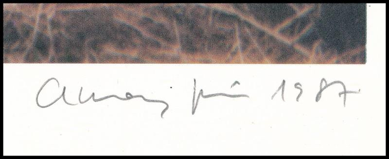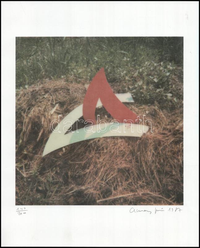 Aknay János (1949-): Vörös és fehér (cím nélkül). Ofszet, papír jelzett, számozott (140/200). 20x20 cm. Az 1987-ben a szentendrei Művésztelepi Galériában megrendezett kiállítás alkalmából kiadott mappából.
