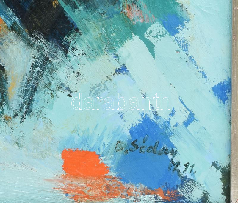 Leírás: B. Séday Mária (1925-2009): Korcsolyázók, 1991. Olaj, farost, jelezve jobbra lent. Hátoldalán autográf felirattal. Dekoratív fakeretben. 50×40 cm.