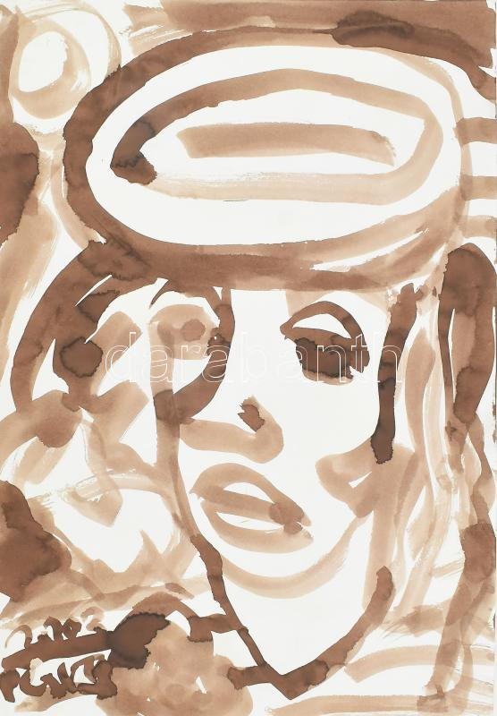 Leírás: Csepeli Németh Miklós (1934-2012): Kalapos hölgy arcképe, 2003. Lavírozott tus, papír, jelezve középen lent. 42x29,5 cm.