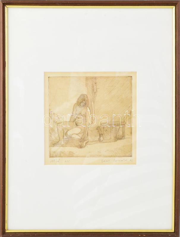 Leírás: Gaál Domonkos (1940-2009): Ülő akt. Rézkarc. papír, jelzett 15x14 cm Üvegezett keretben