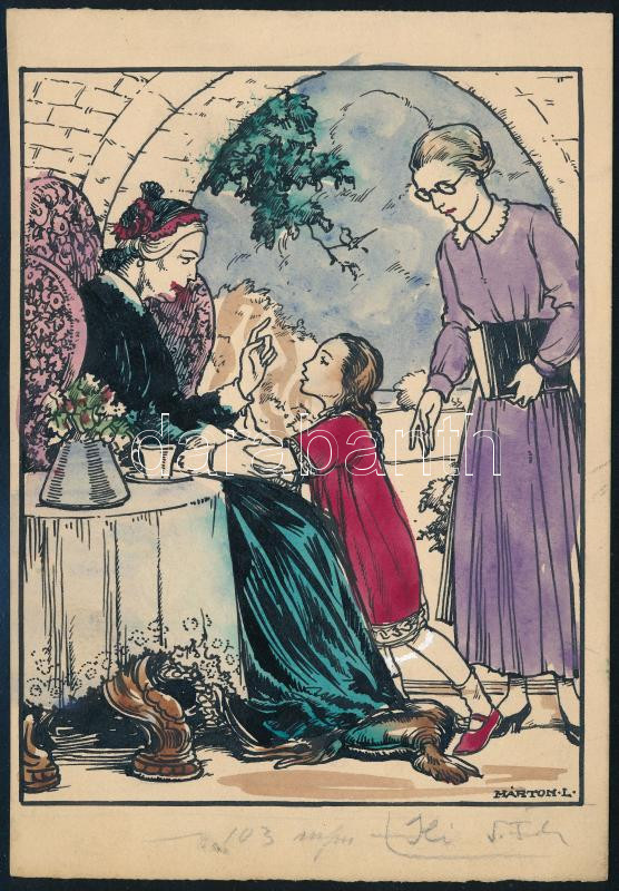 Márton Lajos (1891-1953): Találkozó (meseillusztráció, cím nélkül). Tu... https://www.darabanth.com/hu/488-Gyorsarveres/488.0/Festmenyek-es-grafikak/Festmenyek-es-grafikak~1/Marton-Lajos-1891-1953-Talalkozo-meseillusztracio-cim-nelkul-Tus-akvarell-papir-j~II3247707