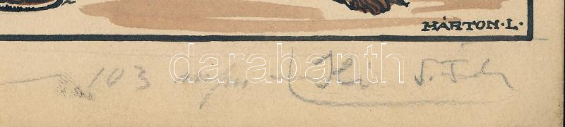 Leírás: Márton Lajos (1891-1953): Találkozó (meseillusztráció, cím nélkül). Tus, akvarell, papír, jelzett, 15x12 cm