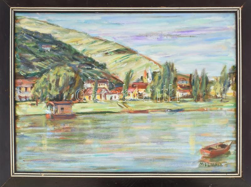 Leírás: Molnár József (1922-2014): Tokaj (Tisza), 1986. Olaj, farost. Jelezve jobbra lent. Hátoldalán autográf felirattal. Fakeretben. 40x55 cm