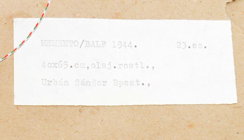 Urbán Sándor (1965-): Balfi memento, 1944. Olaj, farost, jelzett a hát... https://www.darabanth.com/hu/488-Gyorsarveres/488.0/Festmenyek-es-grafikak/Festmenyek-es-grafikak~1/Urban-Sandor-1965-Balfi-memento-1944-Olaj-farost-jelzett-a-hatoldalan-fakeretben-40C3976~II3201513