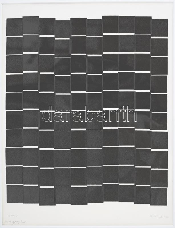 Leírás: Vera Molnár (1924-): Kompozíció. Szitanyomat, papír. Jelzett. Számozott: 41/50. Üvegezett fakeretben. 26x22,5 cm