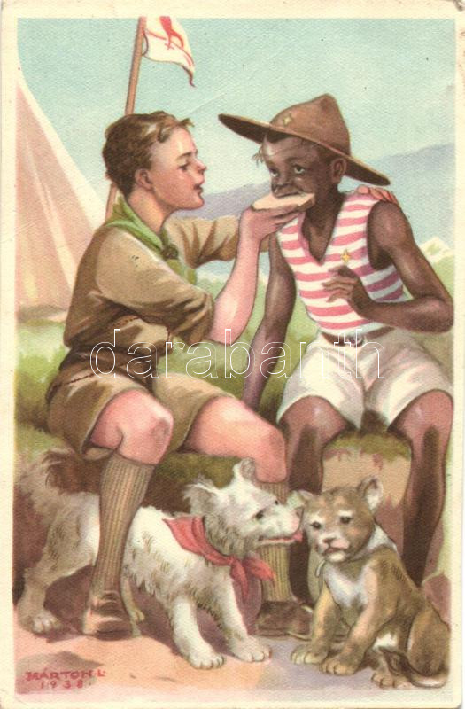 Leírás: A cserkész minden cserkészt a testvérévek tekint. Cserkész levelezőlapok kiadóhivatala / Hungarian scout, So. Stpl s: Márton L. (fa)