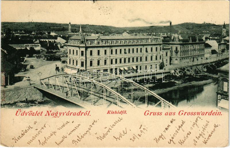 Leírás: 1899 (Vorläufer) Nagyvárad, Oradea; Kishídfő, Janky, Neumann M. üzlete, sörcsarnok / bridge, shops, beer hall (EK)